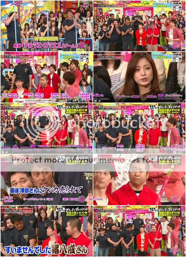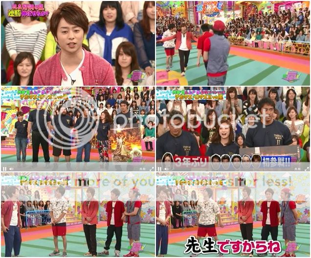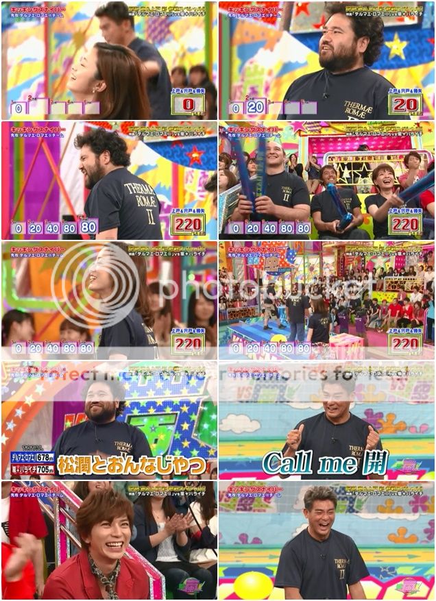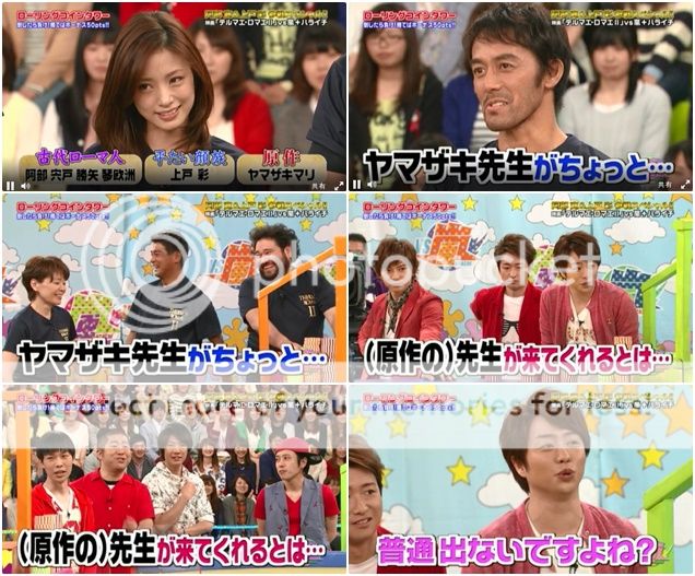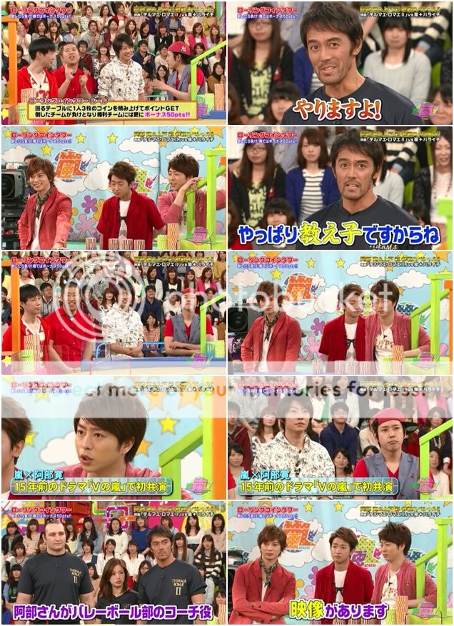 請出我們對決嘉賓,是映畫テルマエ ロマエ II(THERME ROME II)的演員組。上戶彩桑已經有三年沒來番組了,而其他的演員都是首次來VS嵐。翔轉身問『阿部桑是……』NINO『先生呢。』是的!為什麼呢?之後會公佈謎底。
