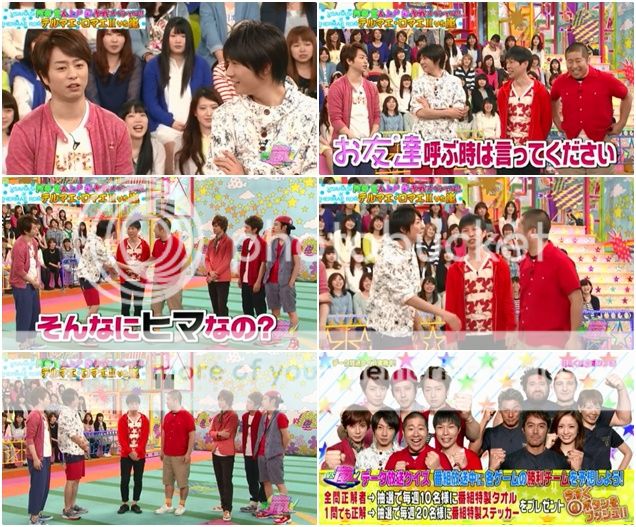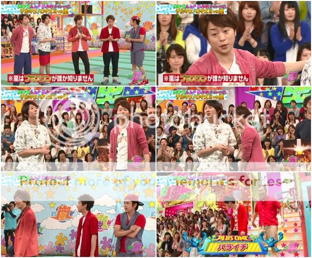 再來是請出PLUS ONE嘉賓。台子才升上來,某夫君就拍了雅紀baby一下。哈哈哈!我知道為什麼!因為你家老婆的好朋友來了!澤部桑和他的夥伴來了!!最近SA很少放粉紅,這些許的粉紅我看到也很樂。