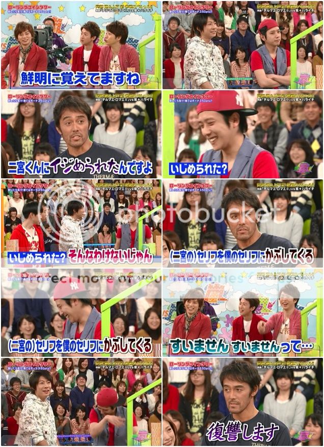 派出的是潤爺+NINO和岩井桑。潤爺問三棒為何感覺很不安?但是應該還好的,畢竟人家有模仿過足球明星。呃……關這什麼事啊!然後岩井桑就說他也有模仿NINO的PLATINA DATA。哈哈哈!NINO整個要暈倒的感覺,就別再提了啦。(就是這裡!!都沒出現NINO的PLATINA DATA經典重現啊!)