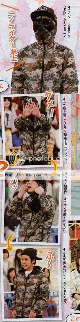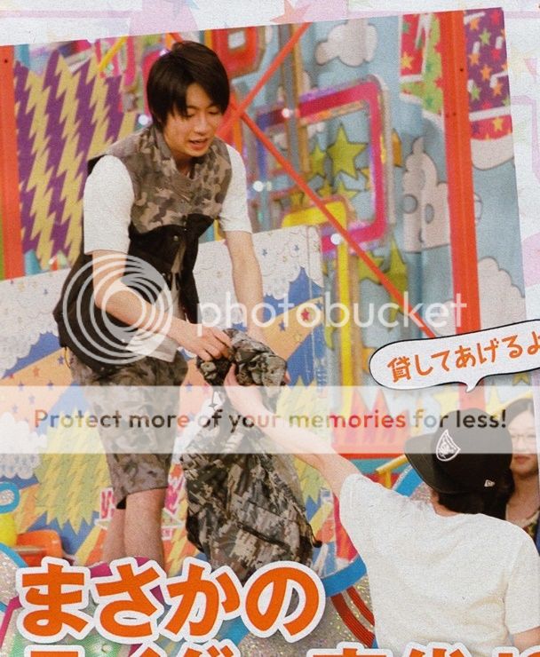 但是一旦讓NINO和雅紀都戴上頭套我就已經笑到不行了。潤爺的服裝,我原本只是在想……啊……竟然給潤爺穿裙子了……但是其實……玄機在他脫掉那個外套啊。