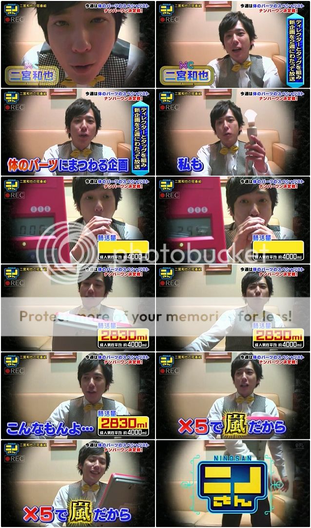 今天番組企劃是關於身體,所以NINO也來了解一下自己的身體,要來測試肺活量。以前也在嵐にしやがれ做過這個測試,當時就發現NINO的肺活量意外的差啊。