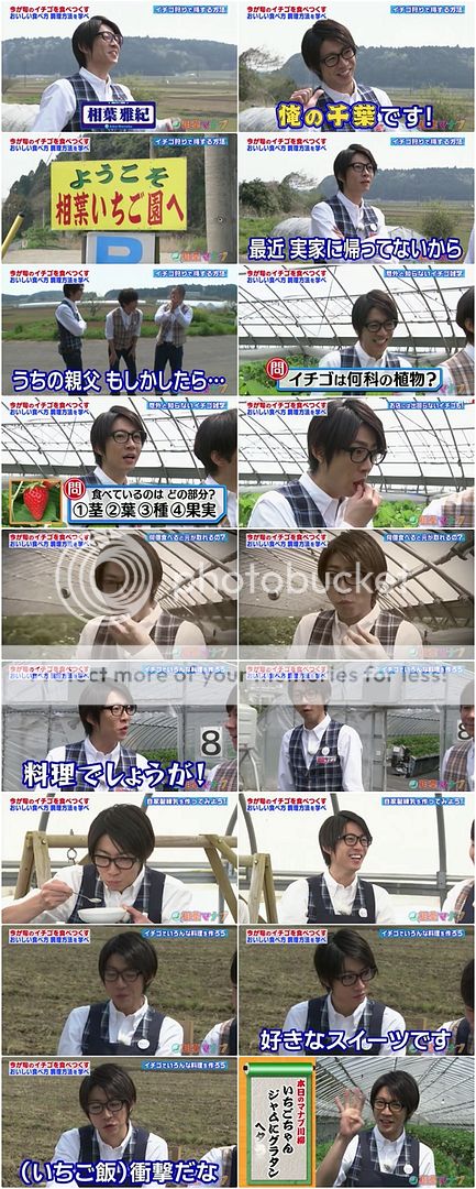 雅紀帶兩位助手到的草莓園名為“相葉”。助手兩位問雅紀家裡什麼時候開草莓園。雅紀開玩笑『最近很少回家……難道我家父親……』哈哈哈!超級可愛的!