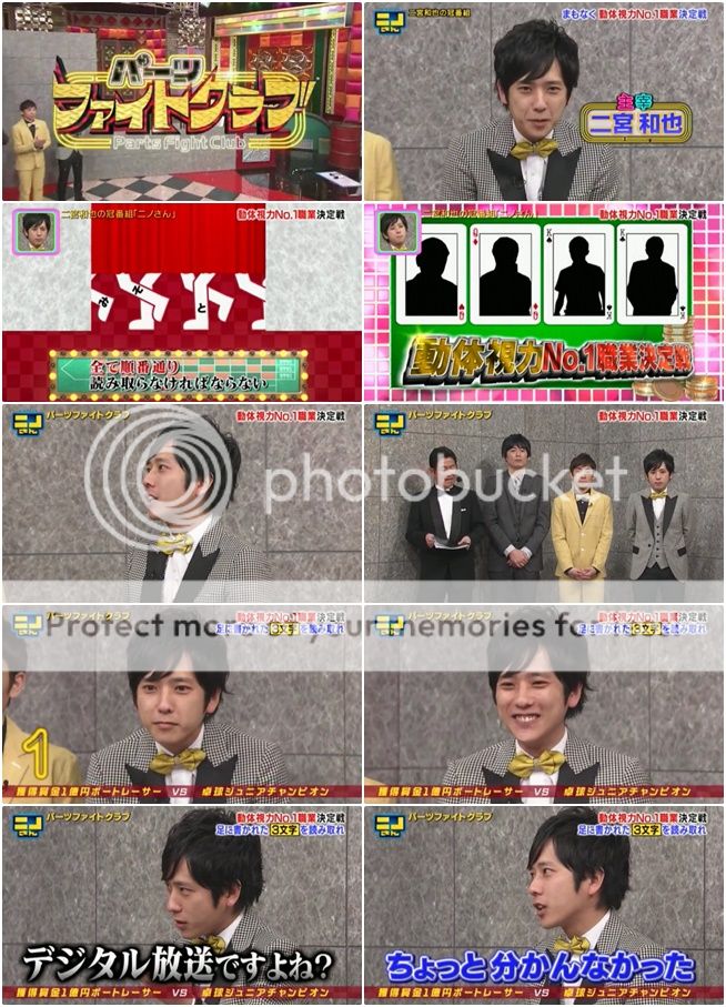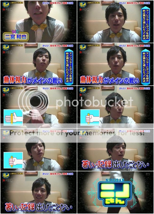 開場NINO說今天番組是要做動態視力檢測……就像是《VS嵐》裡的FALLING PIPE那個遊戲(NINO就擺出那個動作,抓PIPE的動作)。雖然沒有給人太深的記憶。其實我對NINO在這個遊戲的印象很深啊,深在他和他最愛的結子桑那期番組啊。哈哈哈!