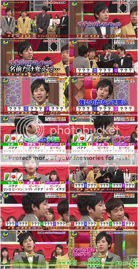 我說啊……第一關就好難了呀。參賽者都聞不出黃瓜的味道啊。staff桑還是先公佈答案給MC們和觀眾知道的,所以我看到蔬菜水果就覺得太難了!!