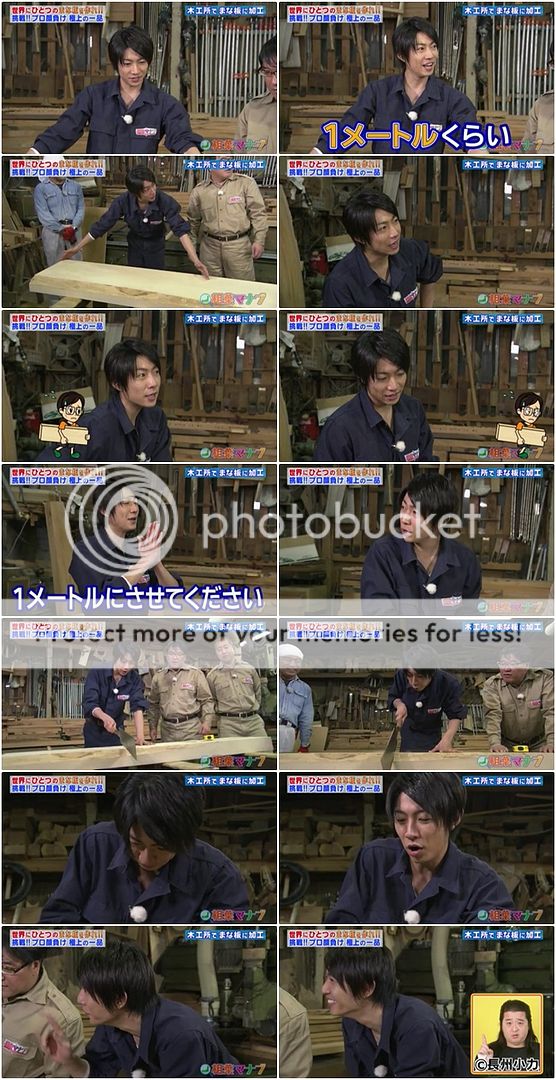 竟然要從選木塊開始啊!鋸完木塊後,雅紀看著地上的木屑竟然說『好像米飯喲。』喂喂!!