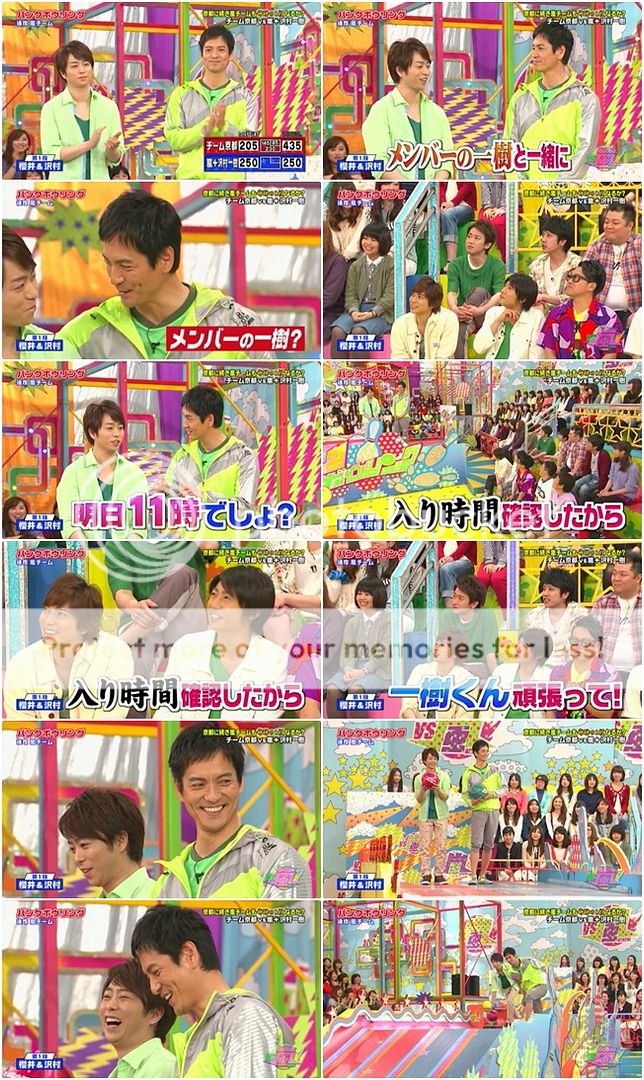 沢村桑順勢就配合起來玩梗了『所以明天是11點?』哈哈哈!真的要來加入嵐了啊。哈哈哈!台下門把全部說『一樹君,加油!』哈哈!各個都這樣!連伊藤桑開始遊戲的口令也是稱呼沢村桑『一樹君』。害人家噴笑了。阿翔也直接大笑。就是喜歡伊藤桑這麼配合啊!