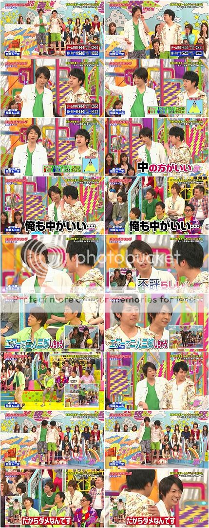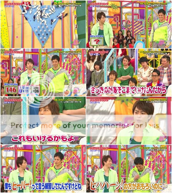 阿翔『空氣中的兩人三足。』然後阿翔親自示範了那個戰略後再讓竹馬兩人示範一次,果然是不行啊!話說雅紀今天就別玩這個了,每次都把NINO摔出去啊。感覺NINO才是保齡球。