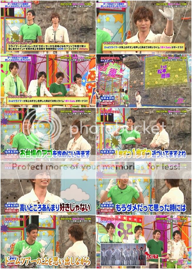 嵐隊攀岩派出潤爺和沢村桑。潤爺負責第一棒,要攀兩面牆。沢村桑第一次就要來挑戰台場下巴了,有感覺一不一不逼近嵐喲。希望有一天可以和嵐一起開tour的那個畫面超級可愛的!!