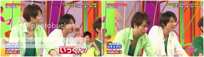 雅紀『你要如何投?』 NINO『我從中間。』 雅紀『我也想中間。』 NINO『這樣的話就不能用戰略了吧?貌似不受好評。』(說的就是勾肩搭背兩人三足吧?)