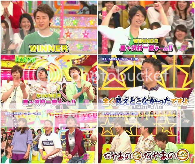 請出PLUS ONE,阿翔立刻就指了NINO,潤也看了NINO。沢村桑來了!沢村桑好好笑!為了來VS嵐,三個月以前就把全身上下的毛都去除了。到底有什麼關係啊?