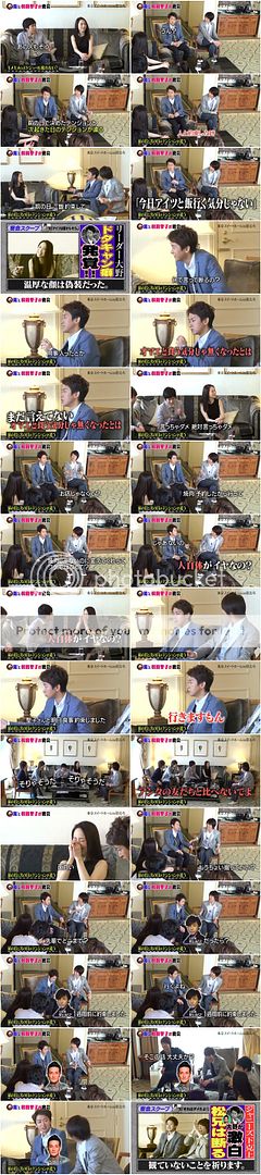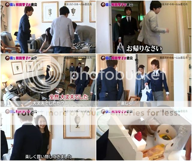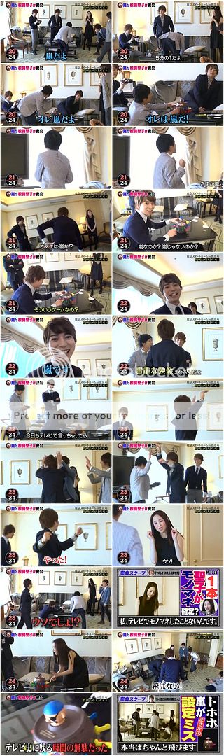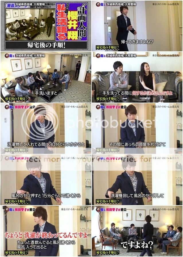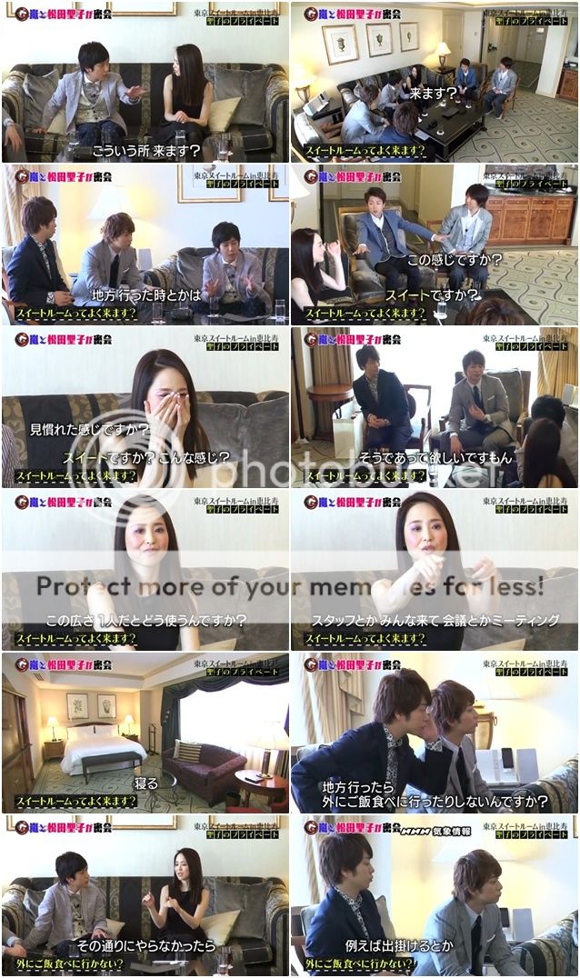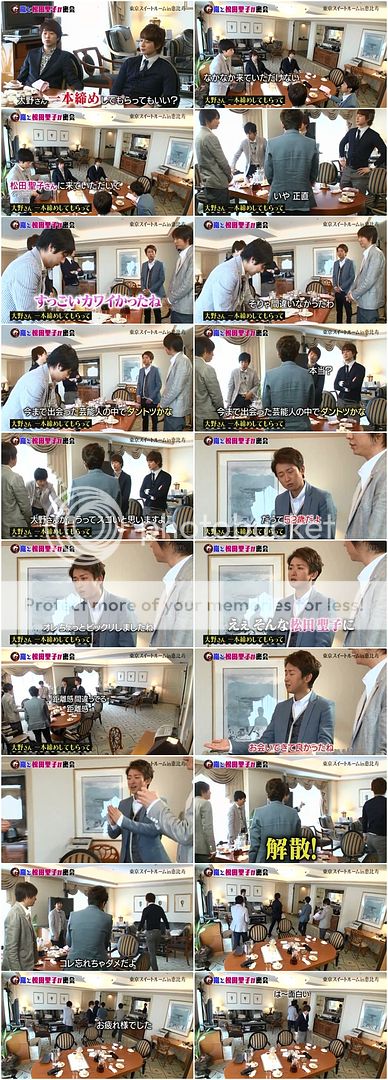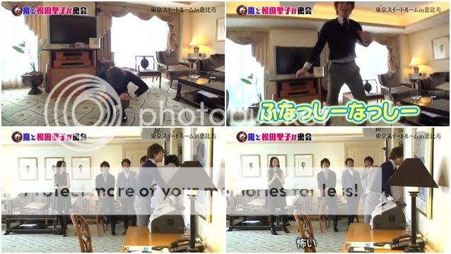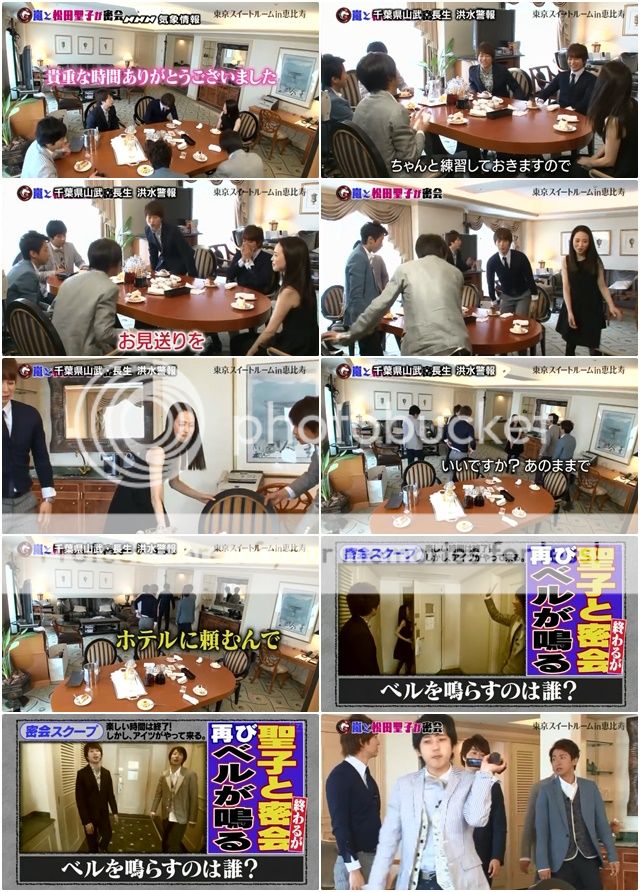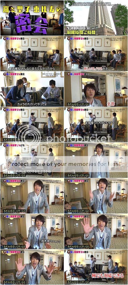 下午1點,某間位於惠比壽的五星級飯店內的總統套房內……坐了五位超級無敵大帥哥啊!在等待哪位幸運人兒出現呢?話說看門把穿西裝來密會這位神秘嘉賓就知道對方來歷可不簡單了。慎重的啊!還有今天五子座位是很意外的平時不會出現在這個番組的排列。竟然是翔潤一邊、天然一邊啊。當然MC NINO在中間咯。
