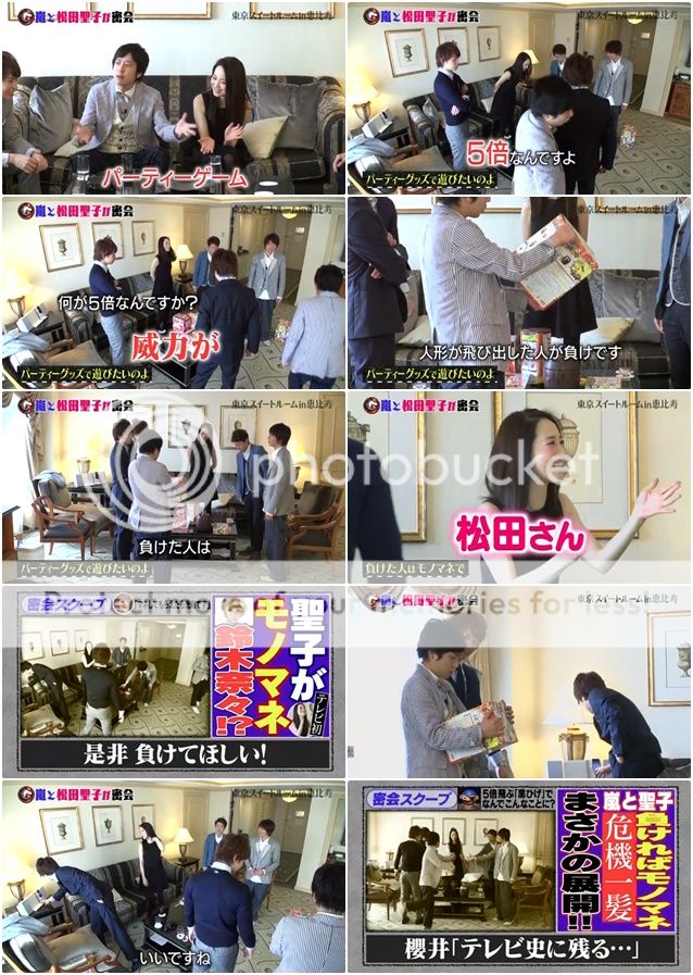 既然來這裡了,當然是要來PARTY的咯!而PARTY當然要玩GAME咯!話說這個遊戲我喜歡!!!是那個把劍插進那個玩偶身上那些縫縫裡,如果插錯了人偶的頭會飛出來那個遊戲。而且這次番組準備了人偶會以五倍的力道飛出來的玩具啊。哈哈哈!好可怕啊!照嵐的慣例,當讓就是用猜拳來定奪先後順序。