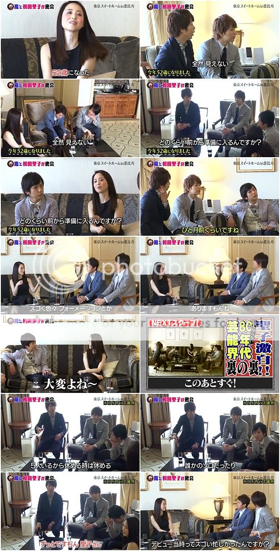 面對大前輩的嵐さん們真的就看得出J家教養好好啊,實在是好有禮貌啊!一直對前輩鞠躬什麼的,真的好喜歡彬彬有禮的嵐。門把就開始問了聖子桑的事,比如雅紀問休息時聖子桑會做什麼?有休息時間嗎我說?我會這麼說當然是因為看了聖子桑的訪問整個對她太敬佩了。我很難的會把訪問內容寫這麼細的。哈哈哈!這樣大家了解我有多敬佩她了吧?嘻嘻