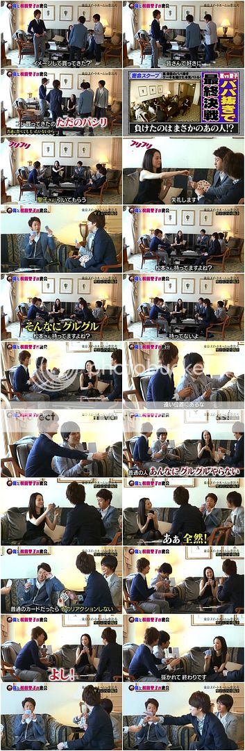 這裡潤其實好可愛!!潤一直來回的洗自己手上的牌,深怕阿翔會抽走似的。好難的看到會緊張的潤啊。