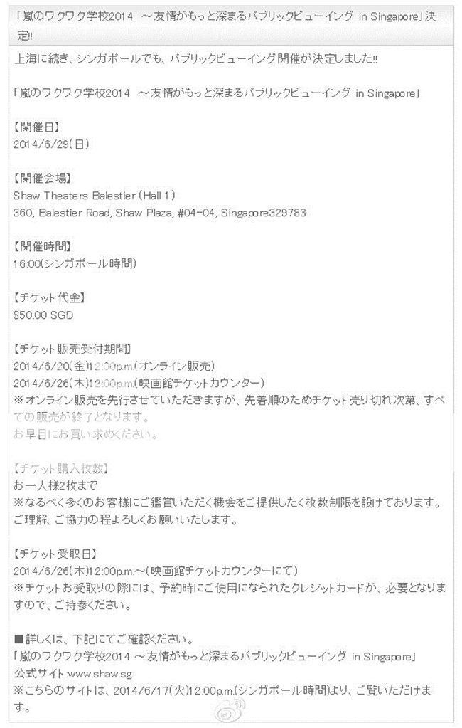 今天一早就看到日飯發布的J家電郵給FC會員的消息。我們嵐學2014年的最終場將在新加坡的戲院轉播!!