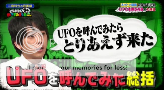 番組播放的VTR主要就是在說staff桑們進行實驗用了好多方法呼喚UFO!真的好扯啊!!!而且還請來了一位曾經多次有機會拍攝到UFO的PRO。我說你也太扯了PRO,還說什麼需要和UFO進行什麼協議讓他們同意出現給你拍攝。小窗口裡的NINO所長一直在偷笑,也一直在故意吐槽『來吧來吧!』哈哈哈!最後被staff桑們喚到真的天空上出現很多異物,像十多個小點點,確實很不明,可是也不肯定是UFO吧!!!