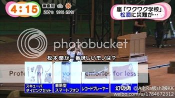 於是大家再讓潤弟弟作第二選擇。潤這次比較不那麼充滿自信了,最後跑向…………高級牛肉!於是潤弟弟掉下去第二次了!!潤問是不是有人猜對了。NINO和雅紀都說是的啊。(但是這個時候還沒說是誰)