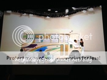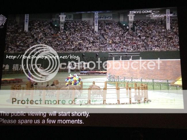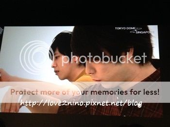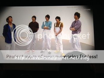 接下來是和新加坡打招呼。利達先『やほ~』我們就跟著回复やほ~。然後利達就忽然大喊『OK LAH!』(喂喂!我說一定是阿翔給我們破壞名譽的。OK LAH,原諒你!因為利達太可愛了!)這裡我想提一下,原本我以為轉播就是像看直播番組一樣,他們看不到也聽不到我們,但是沒想到進到劇院裡,看到一排的staff桑和攝像機,我就知道我錯了!!原來門把也是可以看到我們,聽到我們的!!我的うちわ都沒帶來啊!!!殘念~~~