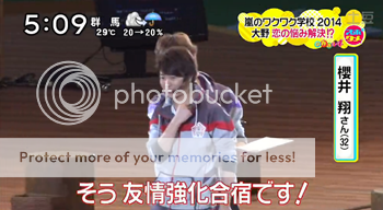 總之來分隊吧!照舊是剪刀石頭布~ 最後分隊結果是山組一隊,模特一隊。(我說啊……真的不是事前決定的?為何和昨天那場是一樣的呢?好吧……雖然不是櫻葉一隊,但是是山組一隊我也圓滿了。)於是NINO介紹是『哥哥隊』(模特),還有『おじいさん隊(大叔隊)』(山組)。哇哈哈哈!!阿翔埋怨『不是大叔!』(明明就是年上啊……哈哈哈)