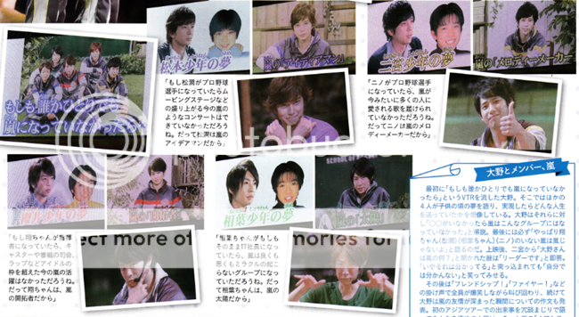 第三個是雅紀。雅紀說幼稚園時希望成為肌肉男(誒?)後來長大後知道那個夢想不切實際,於是說希望可以成為某公司的社長。他希望自己是個會留鬍子的社長,因為爸爸有很像SUPER MARIO的鬍子所以他覺得很帥氣。(什麼樣的公司?)雅紀選擇IT業(雅紀那你就成為我社長了!)。利達說如果嵐沒有雅紀(相片少了雅紀),那嵐就失去了歡樂,因為雅紀是嵐的太陽!鏡頭的雅紀也笑的很害羞了。