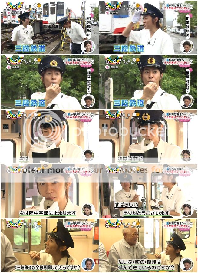 雅紀的部分是一日車掌!不知道為何,看到這個造型的雅紀就很想笑呢。很有車掌架勢嘛。報車站名字為什麼要那個眼神啊!!超級搞笑的!