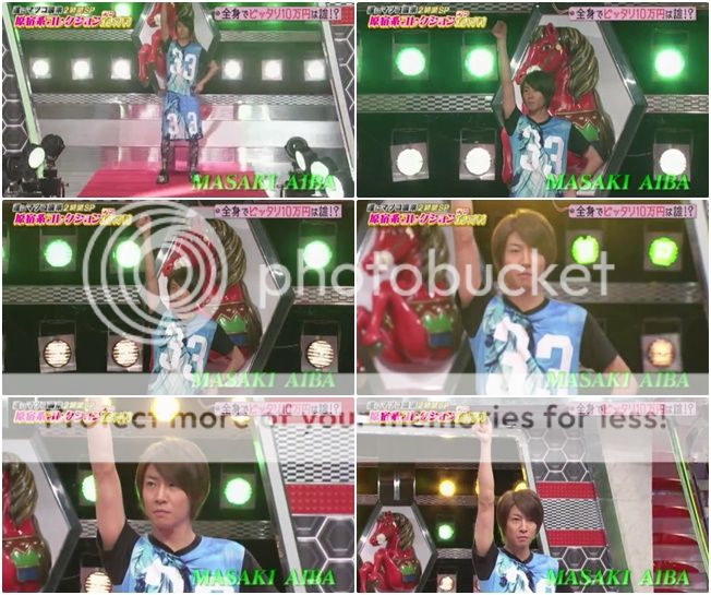 才剛開始Mr.潤就選了好了不起的豹紋外套!哈哈哈!さすがMr!大家一直不斷稱呼NINO『和也サン』真的好可愛啊!!阿翔穿了個和服出場。和也サン『很不錯呢!』還給翔サン配了個金閃閃的腰帶。