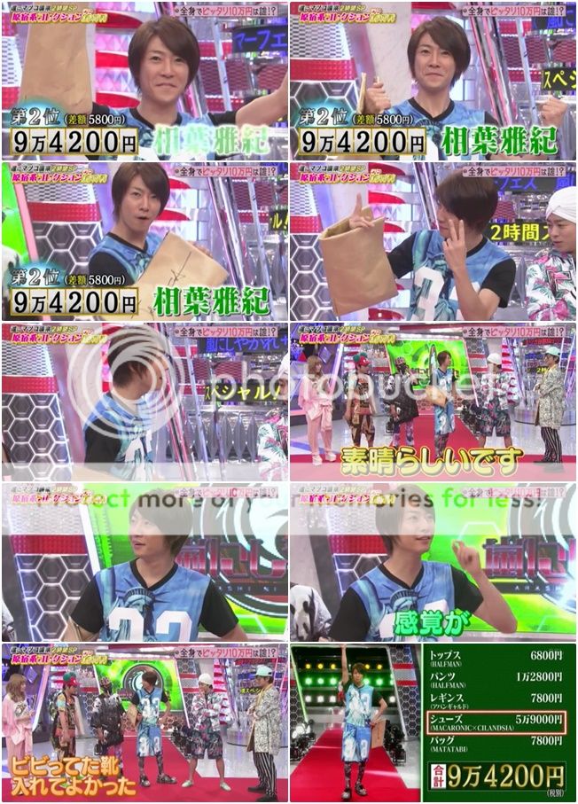 接下來是翔、雅紀和潤來挑選。阿翔很自豪,前兩次的10萬FASHION,他個別得到第二和第一,所以櫻井翔確實是嵐的KING!(呃……只是靠近價格吧…… 和時尚這兩個字沒有什麼關係吧……哈哈哈)