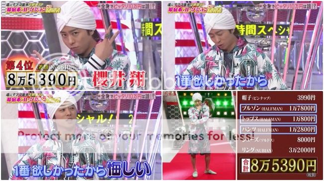 是我們松本rapper!還很hip hop的和雅紀high five!這兩位最近感覺太好了!真是的!MASU桑說了一件很讓潤殘念的事……其實如果最後潤不加兩個單品,他的價格會是…………最接近10萬的!潤『不會吧~』有點可惜哦潤KING!其實我很期待你是KING!因為另外一位石油王是來亂的。