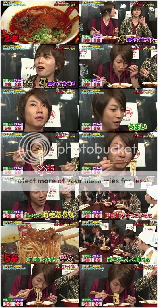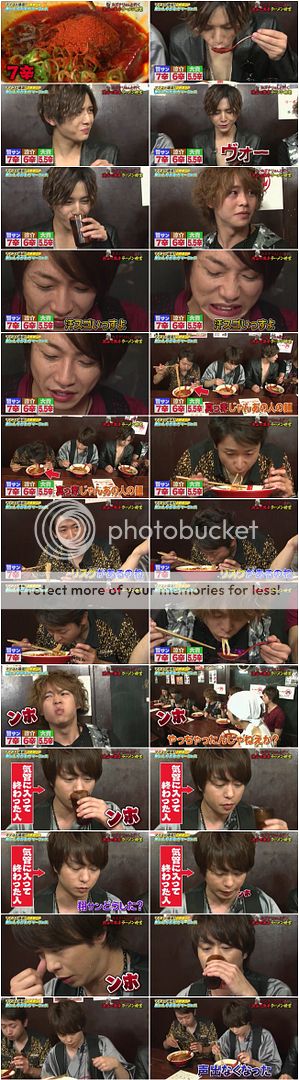 6級的辣椒粉已經好可怕,但是你看7級啊!!涼介サン次吃了一口就咳嗽了,直接灌水。雅紀也開始在冒汗的吃麵了。