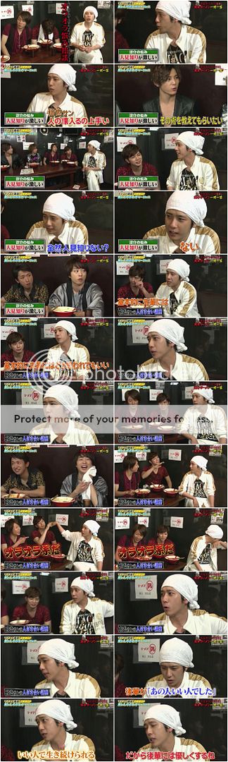 後輩有苦惱需要前輩來幫忙。涼介君說自己很怕生,問和也サン要如何來與人相處?NINO的想法太極端了啦!!說自己個人覺得因為前輩肯定年紀比較大,會比較早死所以根本不用害怕說錯什麼來惹他生氣。(噗!!什麼怪理念啊?)但是後輩相較下會比自己長命所以希望一直給他們留個很好的印象所以一直對他們都比較好一點(難怪咯!!對學生那麼好!!)。想到這個就不會怕生了。哈哈哈!!真的完全搞不懂你啊!!