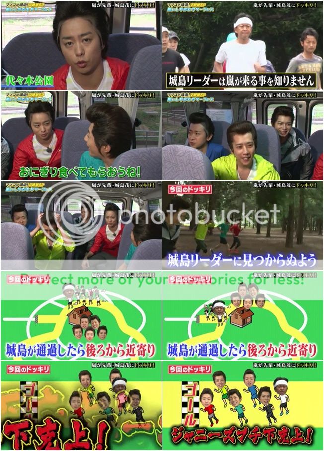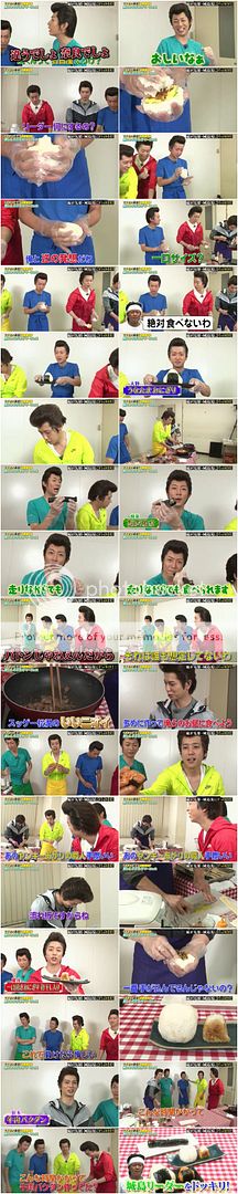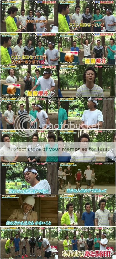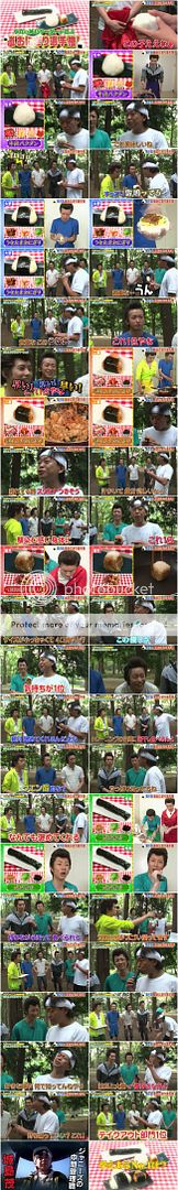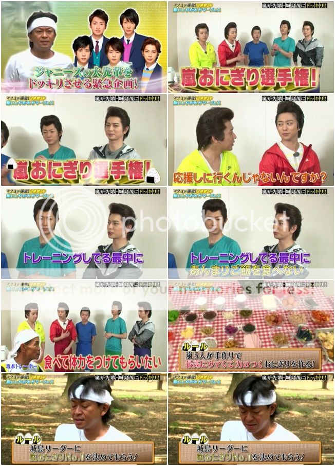 然後是接力棒(誤)。這個完全是在鬧的吧。不過裡頭放哦納豆什麼的材料,真的好美味!也是第一名!城島君你全部都是第一名啊!(話說這裡看到做飯糰的畫面,很自然很自動的,翔就飄到了雅紀旁邊做飯糰呢。真的是形影不離的兩夫妻)
