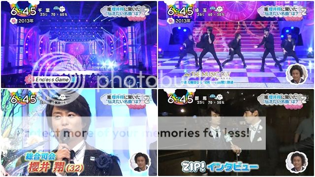 MASU桑『去年嵐也表演了這首歌。』(然後播放去年THE MUSIC DAY嵐的表演。太贊了啊!!無論看幾次都覺得好好看!!而且五人扭的太好看了!)