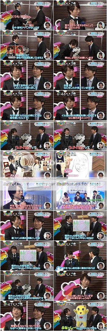 早上好啊翔總司會!MASU桑說今年要來雪恥。因為去年的畫畫環節簡直是殘念啊!把人家畫的超級難看的!!去年THE MUSIC DAY上翔總司會看了VTR後還吐槽MASU桑了。但是翔總司會,難道你不記得你自己畫畫也是非常讓人想吐槽嗎?哈哈哈!你和MASU桑簡直是半斤八兩啊。嘻嘻