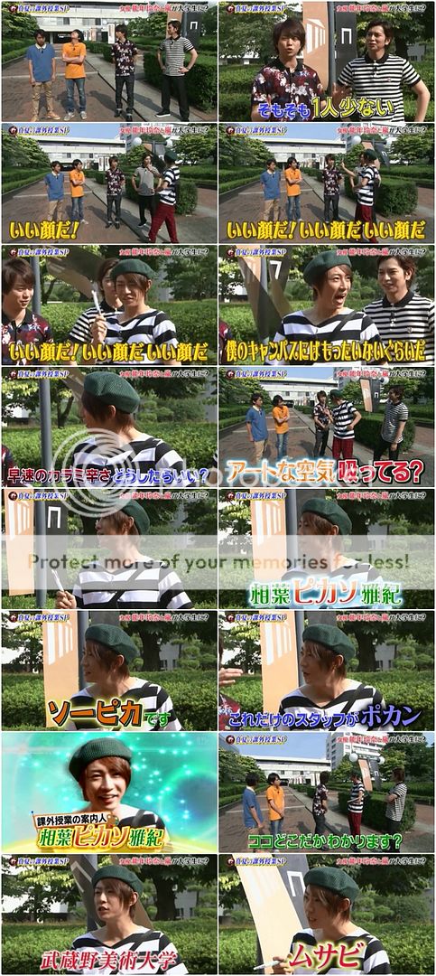 外景的開場。誒?少了個人?忽然一個畫家走了出來(笑)『好棒的臉、好棒的臉。』今天我們相葉比卡索雅紀(好長的名字啊)要帶大家來吸收ART的空氣。