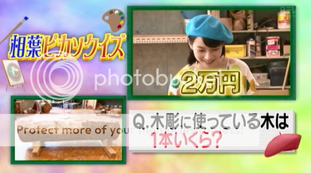 能年醬開始說是2萬,潤說單單原料就2萬?於是能年醬立刻更改答案。磁石吐槽說這麼急著更改答案?難道兩個答案都算?相葉比卡索非常大方說兩個都算。