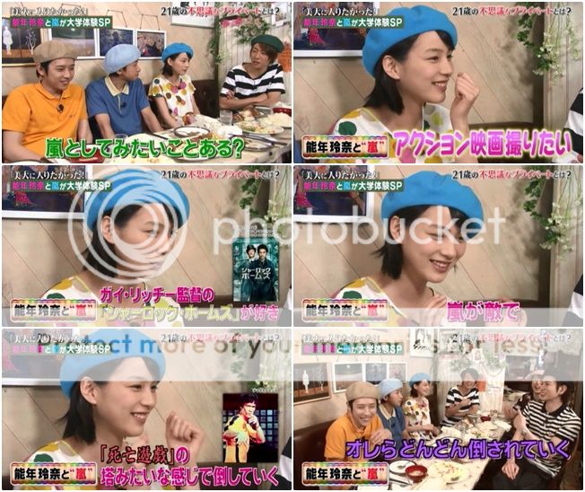 終於開始問能年醬問題了。雅紀問說休假會做什麼?能年醬說會裁縫(好賢惠的嗜好哦)。雅紀問喜歡唱KTV嗎?能年醬說會和朋友一起去唱歌呢,最喜歡唱石川桑的歌。