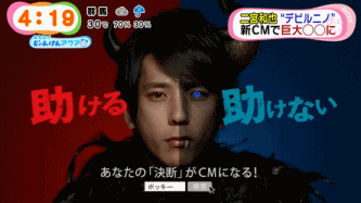 小惡魔徘徊在人群中,終於承受不了壓力的狂吼出來……然後瞬間變成巨大可怕的怪物了!!!!電視新聞都在報導,電視前看到新聞畫面之前的那個小孩和工地大叔都嚇到了。『是那個溫柔的哥哥啊。』