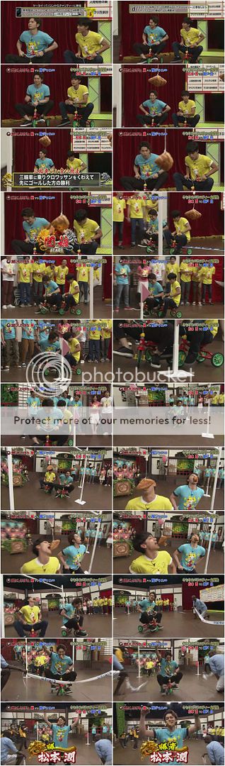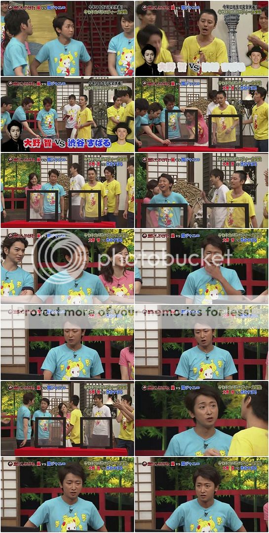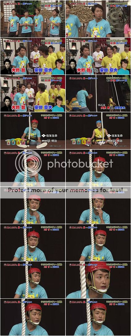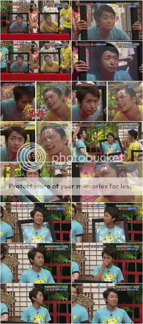 第一組來對決是NINO VS 大倉君。竟然第一個遊戲就來醜的!要臉撞破保鮮膜!不過我們嵐有絲襪套臉經驗所以根本完全不擔心醜這回事。看看啊~去哪裡找這樣願意配合玩醜遊戲的偶像啊~!我們的偶像果然很不一般。