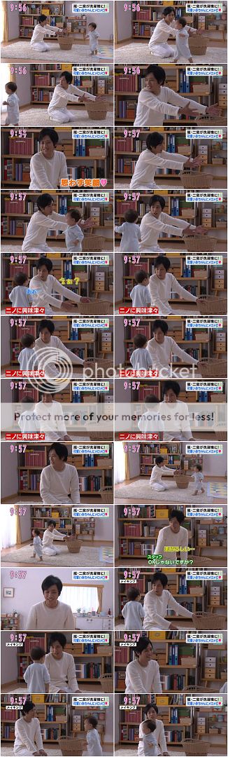 第二CUT,寶寶從NINO身邊跑過去,回頭看了NINO,然後兩人互相對看那裡我整個笑出來了。怎麼會那麼可愛啊~!看著寶寶覺得很逗趣的NINO實在是太迷人了。第三CUT,順利完成。太厲害了吧寶寶!完美啊~!