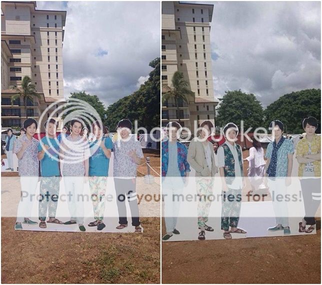 現場還可以和嵐“合影”(?)。其實是嵐的立牌,但是這樣也很不錯啊!!而且貌似很多個,所以不要爭先恐後。 門把穿上夏威夷服裝太喜歡!不愧是在這裡結成出道的團體!