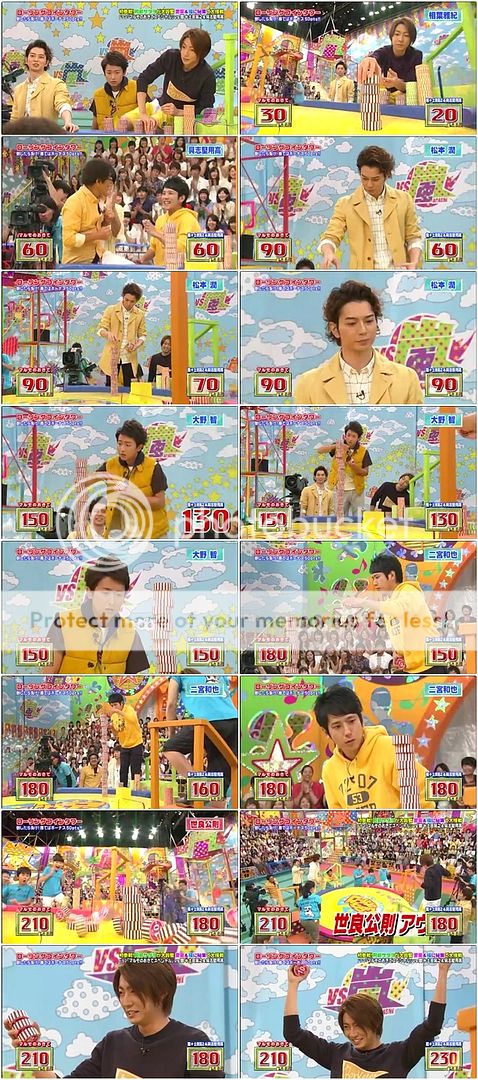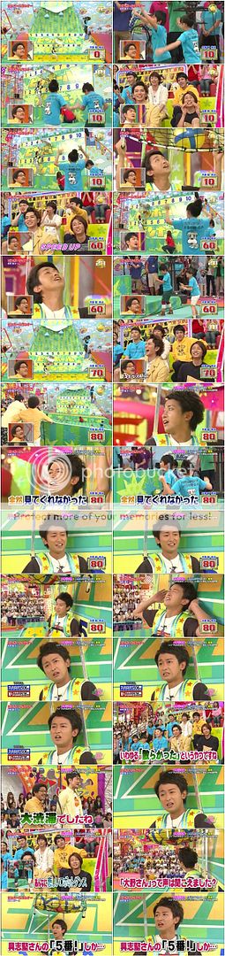 殘念啊~~~~大家表現不佳!小朋友們就不用說了,畢竟也沒那麼多力,但是其他人也太平均的爛,但是還好有一次PERFECT。然後看到一哉桑一直擺出那個直線直線的動作,台下的嵐也都一直跟著做那個動作。好可愛!!最後170分結束。