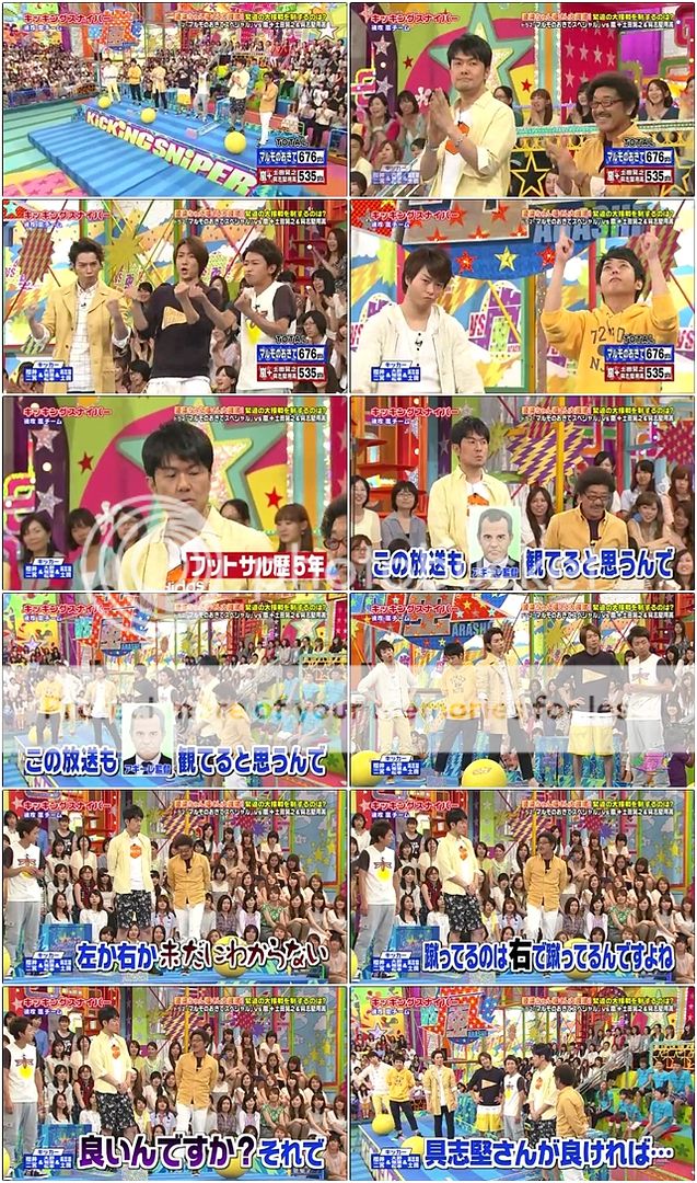 小朋友們太可愛了!!福君說自己從幼稚園到高班三年一直都在踢足球。嵐說那幼稚園兩年,高班三年綜合就是5年吧。然後問福君『今年幾歲?』福君說10歲。翔腦筋動好快!!翔『也就是說人生的一半都在踢足球啊。』和厲害的三浦選手一樣足球齡了說!!哈哈哈!!世良桑很殘念啊~~連著兩個遊戲都很糟糕,不知道這次會有表現嗎?自己都心虛的小聲回答了。變得沒自信了啦!!哈哈哈!至於前棒球選手的阿部桑則是對於足球一點也沒信心。這劇組是怎樣?想全部丟責任給小朋友們嗎?哈哈哈!一哉桑開始說起自己喜歡足球從漫畫開始,土田桑擺出一個完全不感興趣的臉,一哉桑說『我可是在說話!』然後罵了一大串後,土田桑說『這個人最近很容易生氣。』哈哈哈哈!!明明就是你弄他生氣的!一哉桑就又開始說啊說的,連伊藤桑都不理他了,沒人出聲。一哉桑『喂喂?』(哈哈哈!有人在嗎?)