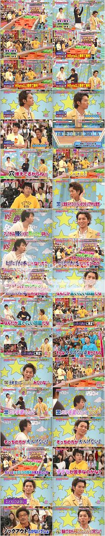 翔才剛踏上台子呢,根本沒玩到。不過看到他對著雅紀那樣笑好可愛啊!!方向完全就是對準了雅紀哦!土田桑吐槽說世良桑的臉立刻失去笑容瞬間好好笑。NINO說至少大家都碰到了COIN啊。翔『我還沒有啊。』雅紀『那現在來疊吧。』哈哈哈哈!!於是全部人看著翔好好的擺了三個COINS上完全沒有移動的台子。成功!亞達!!哈哈哈哈!!翔『真是浪費時間啊。』哈哈哈!不過看你自己都笑那麼可愛,嘛嘛~~時間一點也不浪費喲。