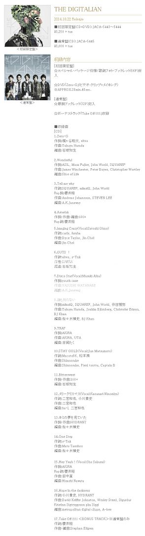 而同時,J WEB也發布了10月22日的正規專輯表紙和曲目!!
