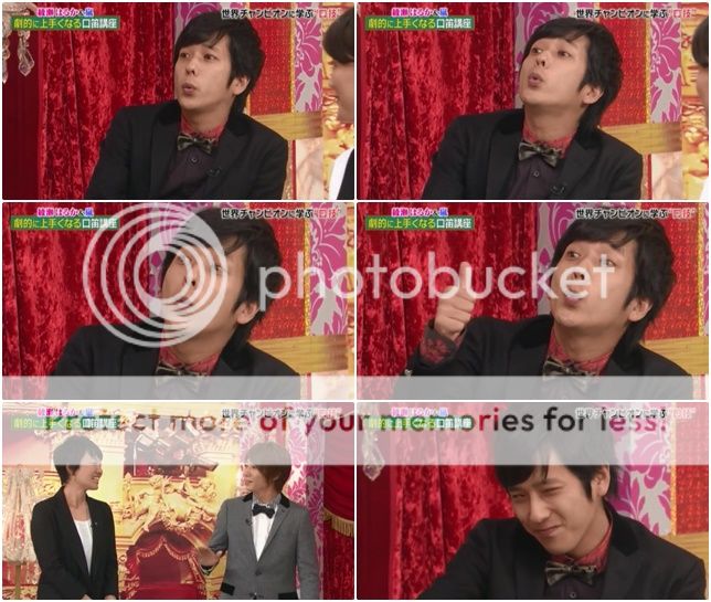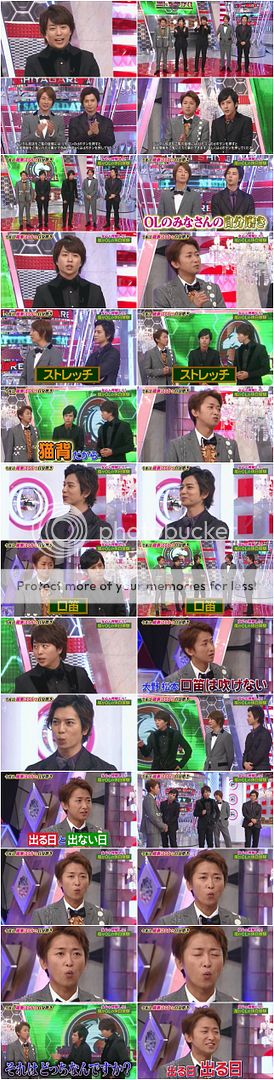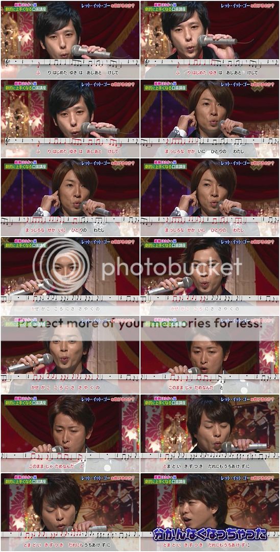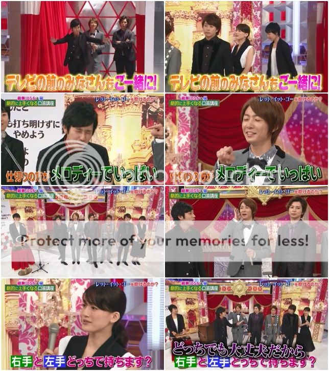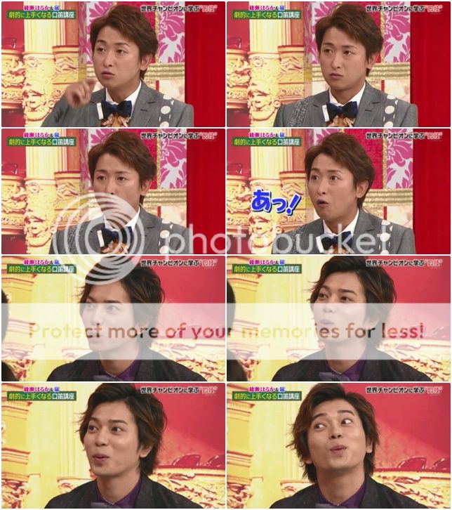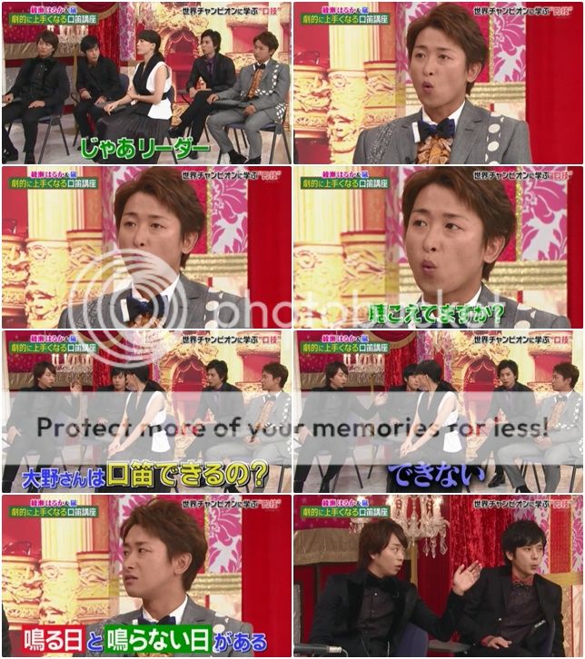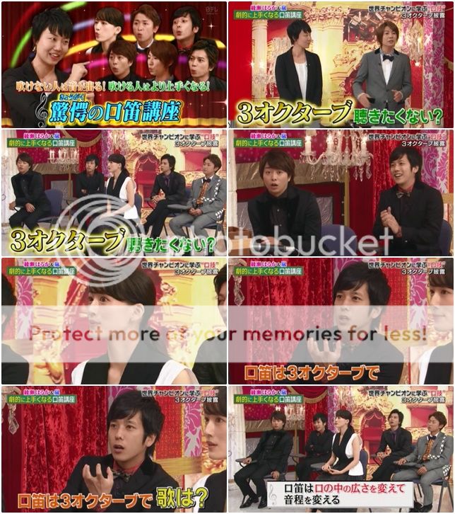 翔問『大野桑和松本桑不會吹口哨吧。』潤就來稍微示範,雖然很弱但是好像還是有吹出一點聲音。利達說自己的情形是有可以吹出來的日子,和吹不出聲的日子。啊!今天是吹的出聲的日子。哈哈!