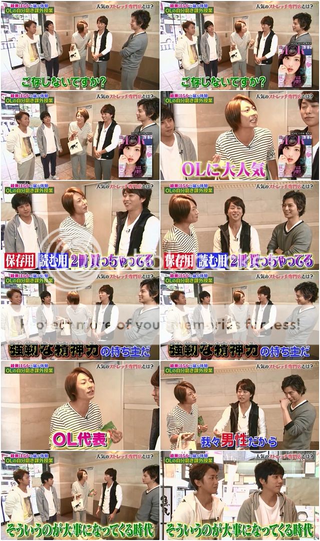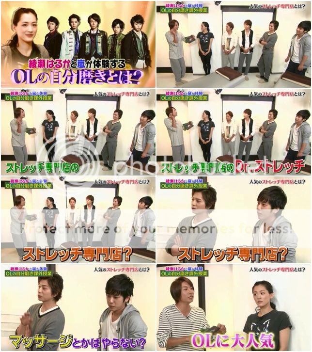 綾瀨醬會做伸展操嗎?綾瀨醬說睡覺前會哦。雅紀『那對於伸展的知識是懂的吧?』綾瀨醬很小聲(很不確定的)嗯……雅紀『這樣哦、這樣伸展哦。』綾瀨醬『我知道、我知道。』翔看到兩位天然對話,直接『那今天就這樣……』然後準備走人。哈哈哈!!今天天然對上天然相比會笑的半死了。不要這樣嘛~給我們天然君一個機會嘛。嘻嘻