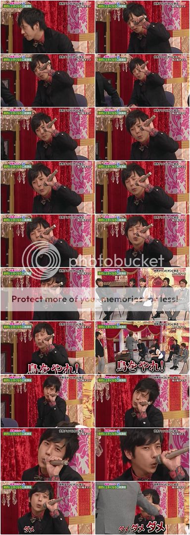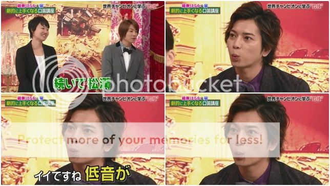 請NINO來用麥克風示範。只是讓他試試看吹鳥叫聲,但是NINO直接吹出『ARASHI』也太厲害了吧!!!整個好得意好可愛!!好帥啊!!!不愧是我們家寶貝!!表情可愛到爆,害我截圖截到手軟!!最後雅紀直接上前制止。是讓你吹鳥叫聲啦!