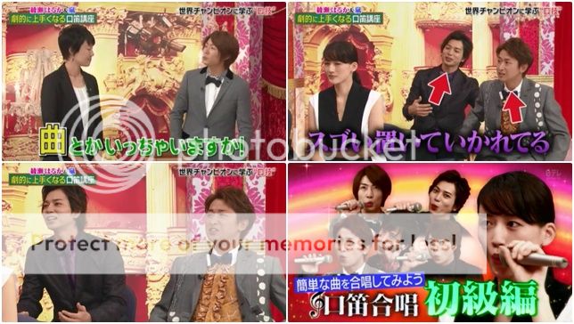 大家來好好的表演那首歌曲。真的有厲害!!我覺得潤智其實只是做動作啦,我覺得一定沒吹出聲。哈哈哈!!但是綾瀨醬一直在笑一直在笑,連NINO都受不了吐槽說這位小姐一直在笑。綾瀨醬解釋那是因為她覺得大家的口笛吹奏的太美好了啊。