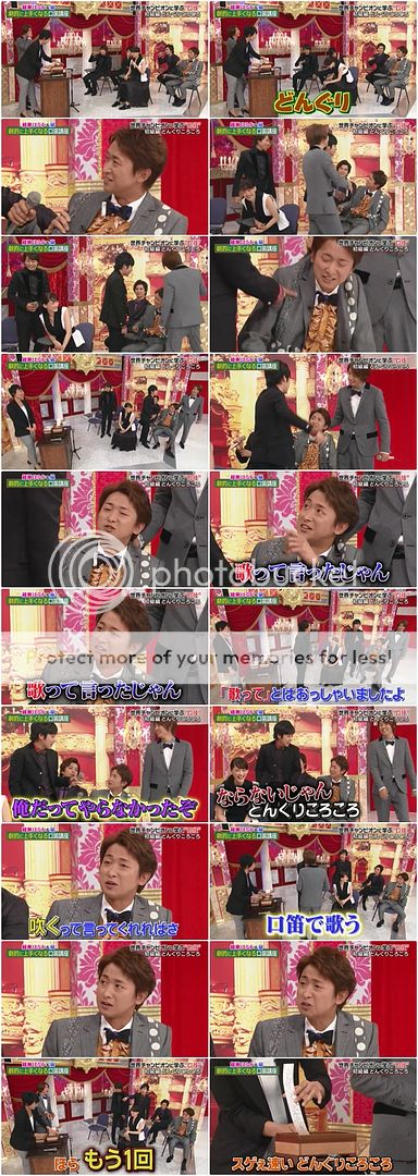 NINO表現不錯,到雅紀那裡稍微卡可是還是算順利過關。接下來兩位請不要對他們太苛刻,有出聲音就很不錯了,怎麼知道到了翔那裡竟然卡了!!!誒誒!!!!!翔怎麼可能!!!!明明是音樂才子啊!!翔好像有點聽不清楚音樂所以不知道要從哪裡開始。