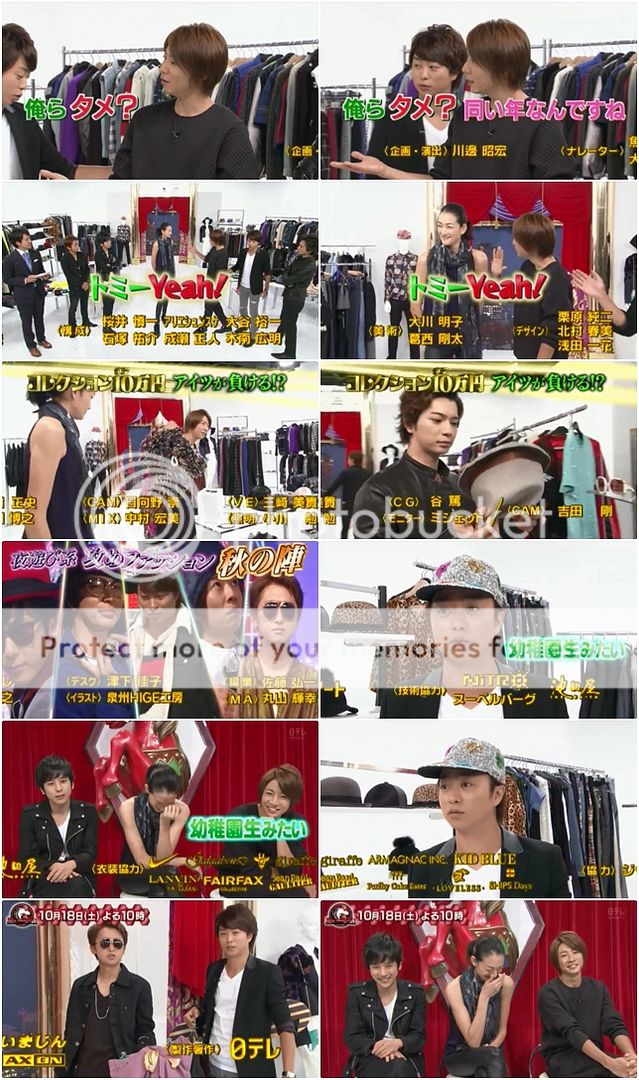 下回有10萬fashion!帥氣的模特兒嘉賓來了。這次是要搭配出秋季的服裝。翔戴起那個帽子,被模特兒嘉賓吐槽說好像幼稚園小朋友。哈哈哈哈!!!利達你那是什麼オシャレ的墨鏡啊!!雅紀又來胡鬧了嗎?那個是什麼?自由女神再現?期待下週的10萬fashion搭配!